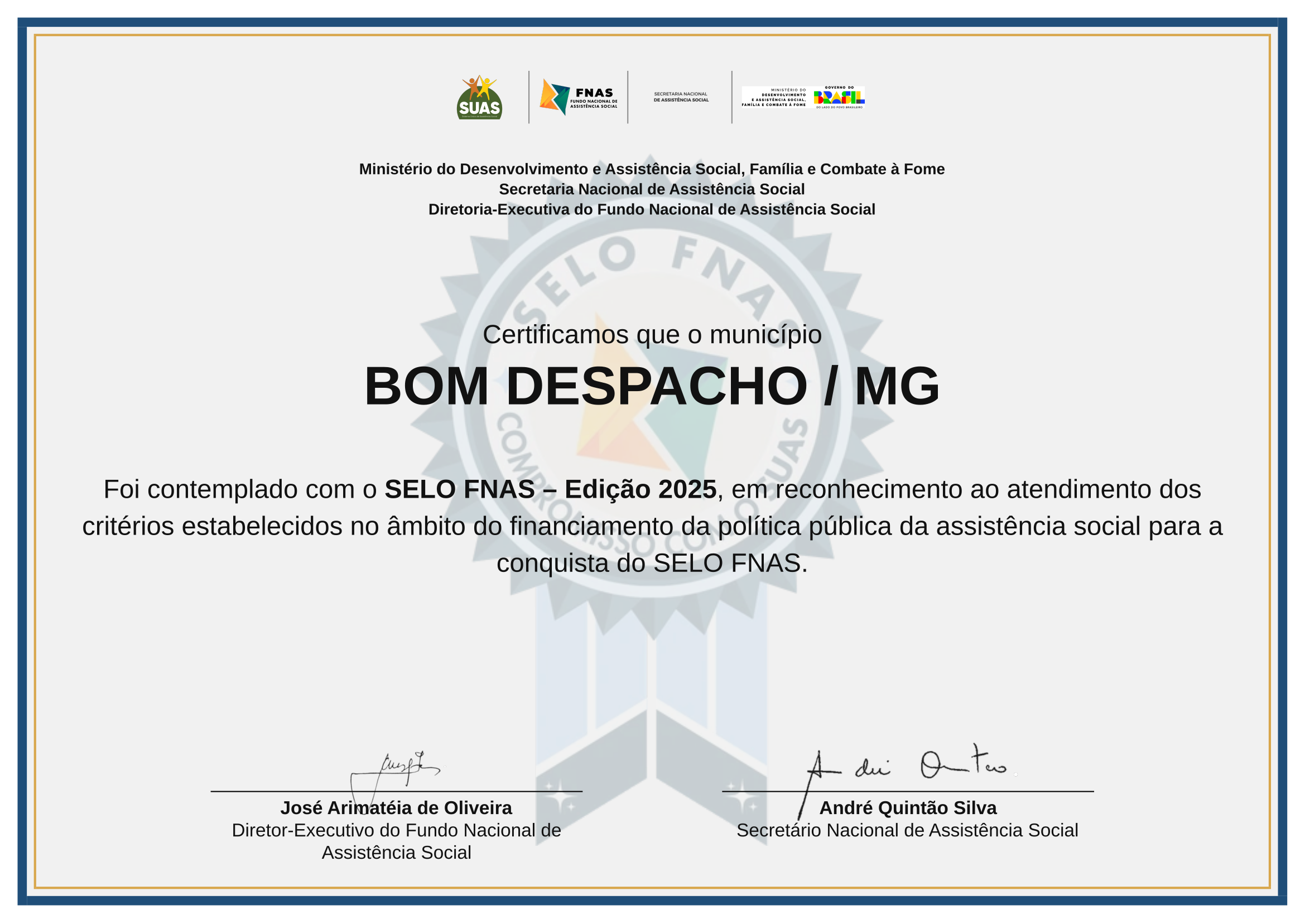 Hoje celebramos em Brasília , na capital do Brasil, um momento de grande significado para a educação de Bom Despacho: a entrega do Selo Ouro do Compromisso Nacional Criança Alfabetizada.