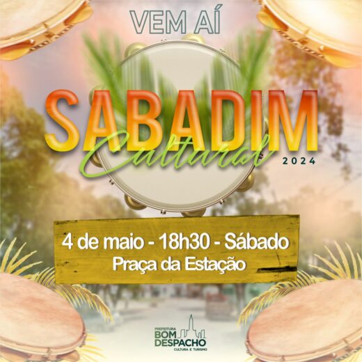 No dia 4 de maio, a Prefeitura de Bom Despacho realizará a terceira edição do Sabadim Cultural que será uma boa oportunidade para bandas e músicos de samba ou pagode de Bom Despacho mostrarem o seu talento. Os profissionais interessados (somente bandas e músicos locais podem se inscrever) em participar da seleção podem se inscrever, até o dia 14 de abril, clicando aqui.