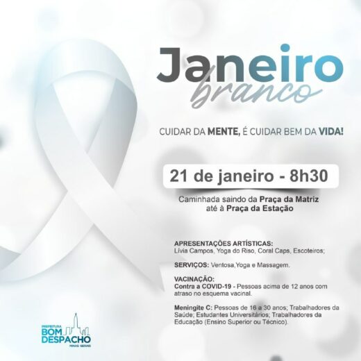 Dia 21, a Prefeitura realizará uma ação para promover a campanha Janeiro Branco em Bom Despacho.