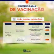 Confira o cronograma de amanhã (dia 6) da vacinação contra Covid-19 e siga também as recomendações da Secretaria de Saúde e imunize-se.