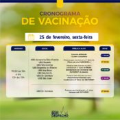 Confira os cronogramas de sexta-feira (dia 25) da vacinação contra Covid-19 e CLIQUE AQUI para acessar os requisitos de vacinação.
