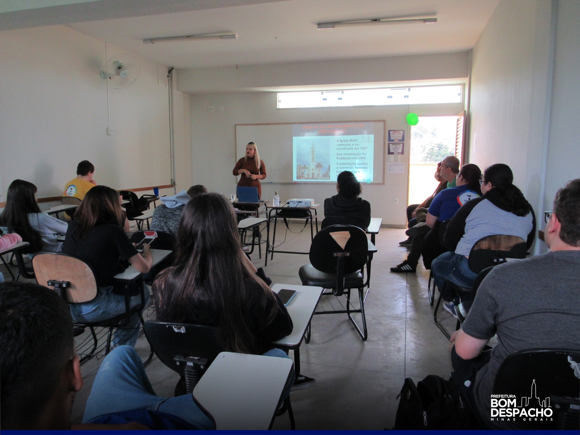 Servidoras da Secretaria de Cultura e Turismo estiveram no Colégio Tipura para uma ação de Educação Patrimonial. A ação contou com uma conversa com as alunas e alunos do ensino médio sobre alguns dos bens culturais de Bom Despacho como o Reinado, a Fonte da Biquinha, a Igreja da Matriz, o modo de fazer biscoito de queijo.