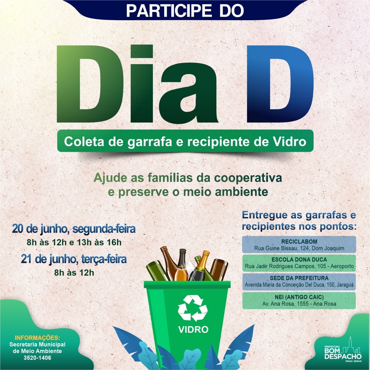 Participe da coleta de garrafas e recipientes de vidro