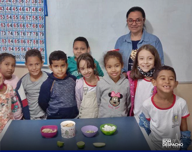 Já a turma da professora Silmara realizou a experiência de “Estourar Pipoca”. Os alunos observaram as pipocas estourando, sentiram o cheiro da pipoca, perceberam a sua forma e temperatura ao pegarem a pipoca e o sabor ao colocarem a pipoca na boca.