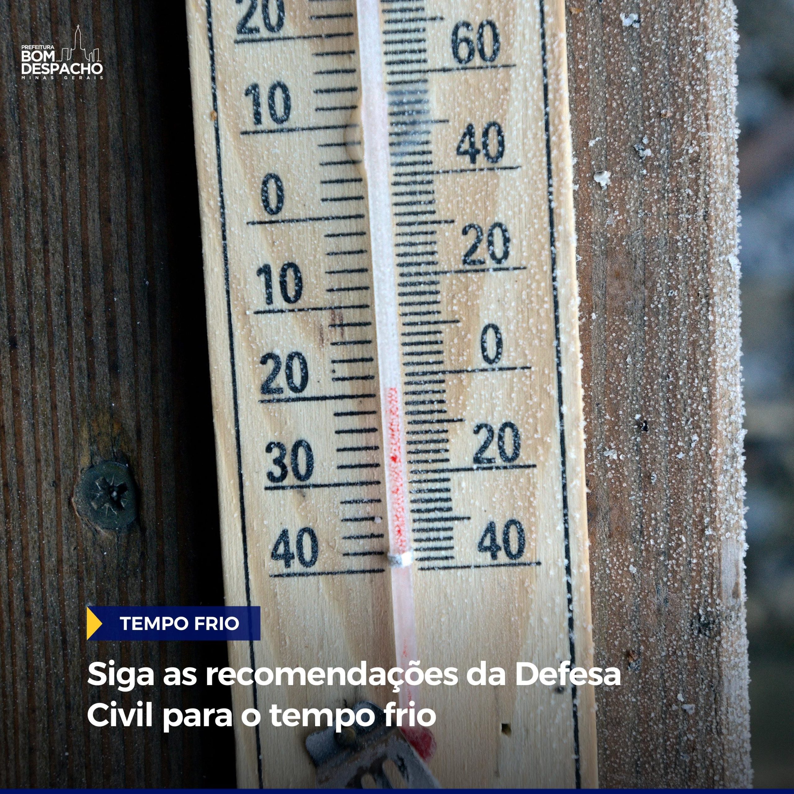 A Defesa Civil de Bom Despacho alerta para o tempo frio dos próximos dias em Bom Despacho. Siga as recomendações da Defesa Civil: