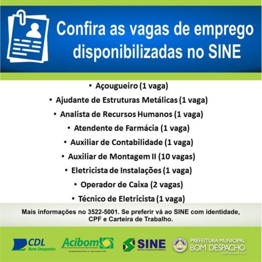 » Veja as vagas de emprego disponíveis no Sine de BD