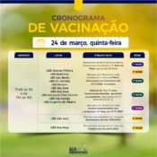 Confira os cronogramas de quinta-feira (dia 24) da vacinação contra Covid-19 e CLIQUE AQUI para acessar os requisitos de vacinação.